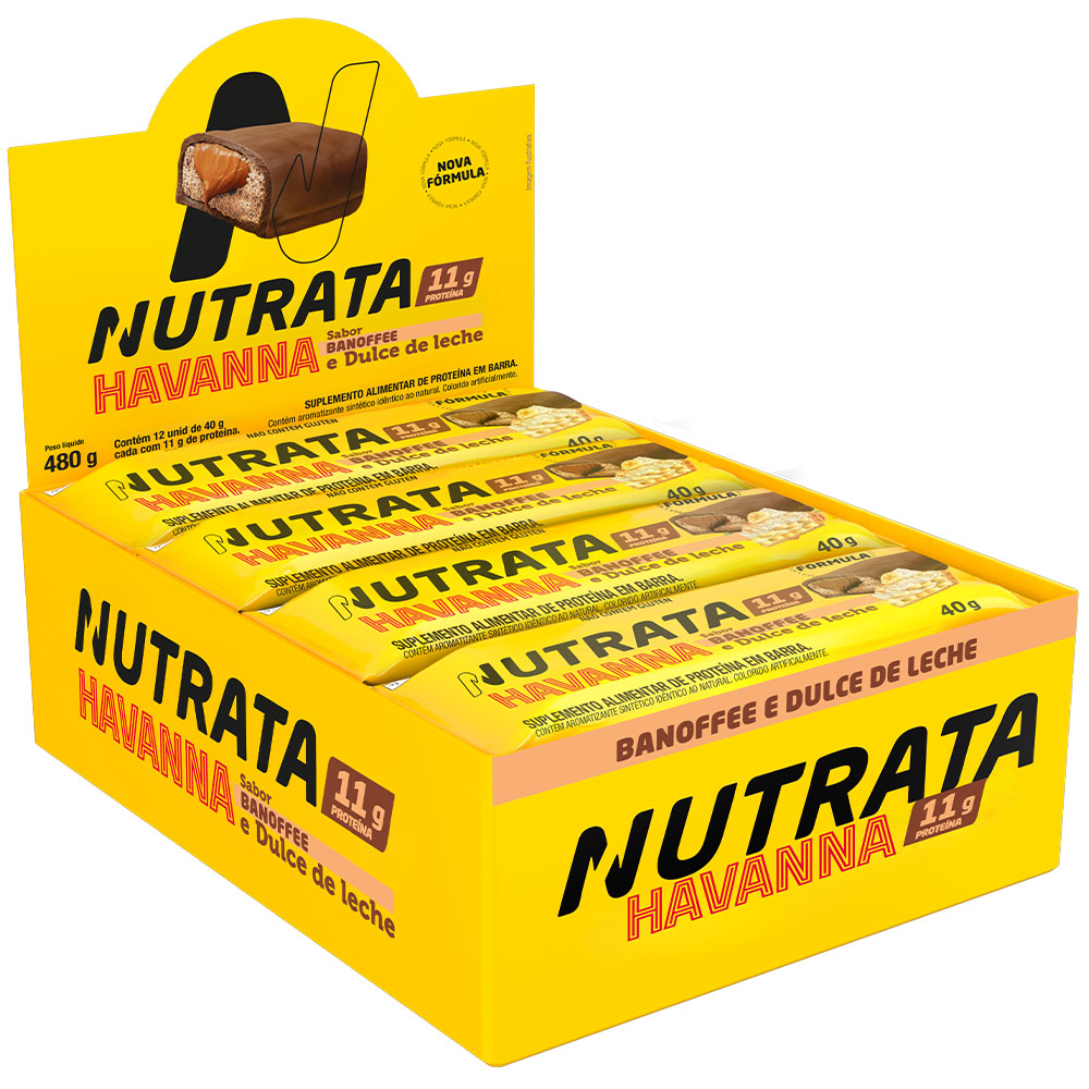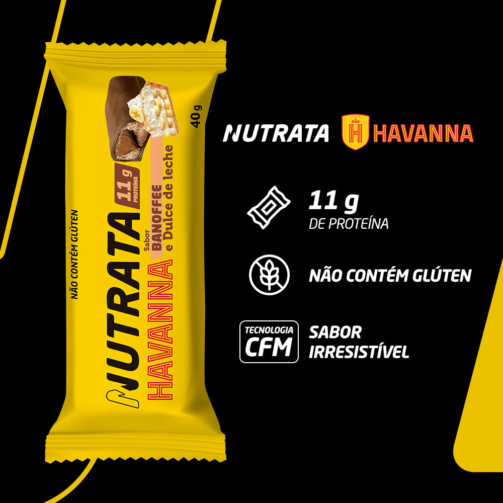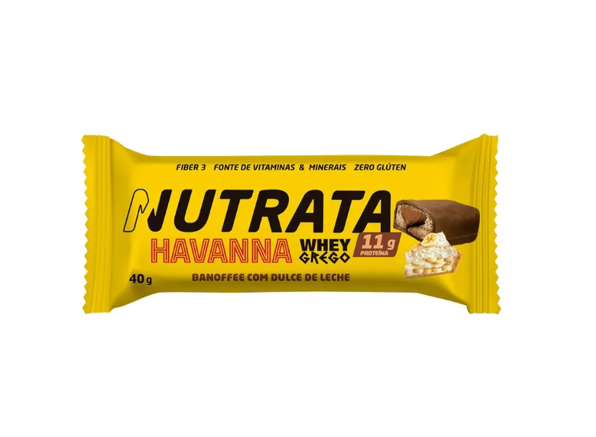 Barra Whey Grego Havanna sabor banoffe, combinação banana e doce de leite